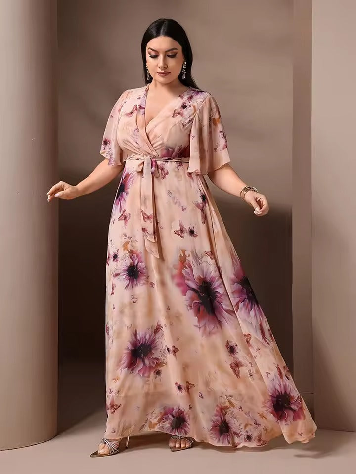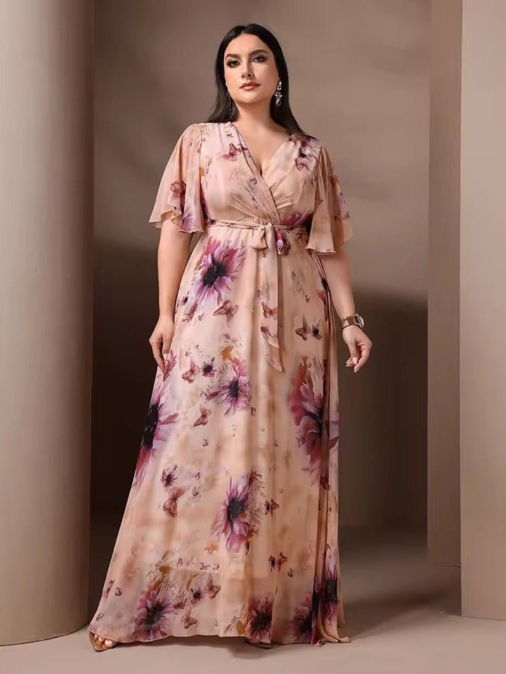 - Luchtige en Elegante Pasvorm: De zwierige maxi-lengte en vlindermouwen geven de jurk een dromerige en verfijnde look.