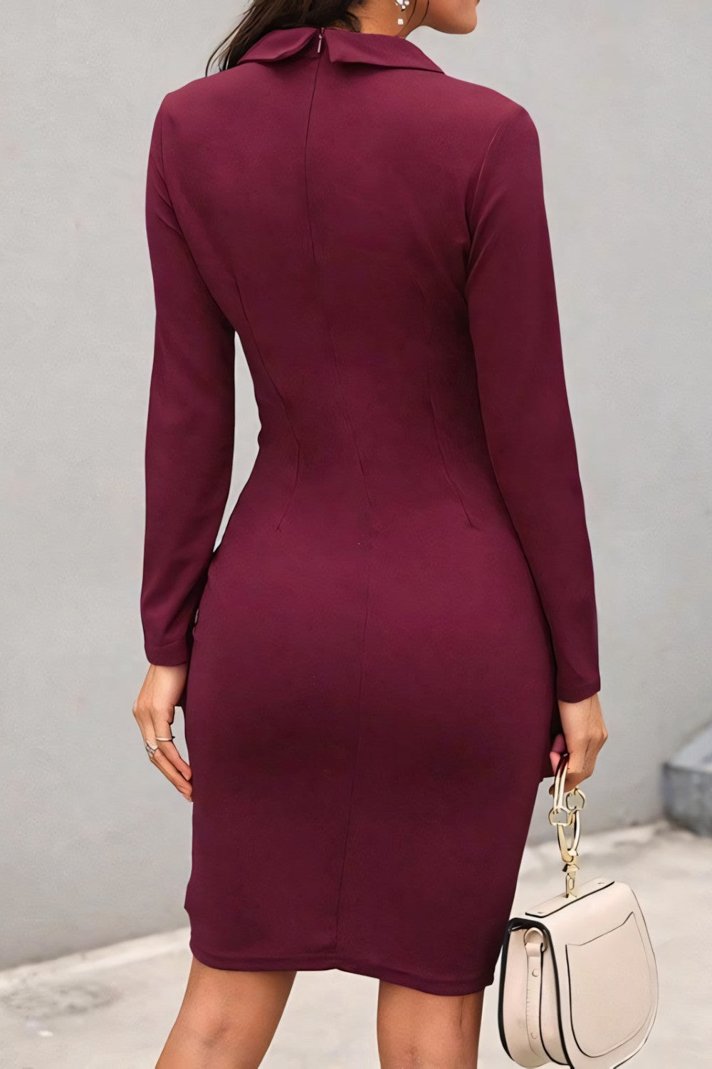 Voel je zelfverzekerd en stijlvol in deze elegante midi jurk, perfect voor zakelijke gelegenheden. Het verfijnde ontwerp met een klassieke kraag en lange mouwen accentueert je silhouet en zorgt voor een professionele uitstraling. Gemaakt van hoogwaardig polyester met een vleugje stretch, biedt deze jurk optimaal draagcomfort, zelfs tijdens lange werkdagen. De knielengte en slanke pasvorm maken het een veelzijdige keuze voor zowel kantoor als zakelijke bijeenkomsten.