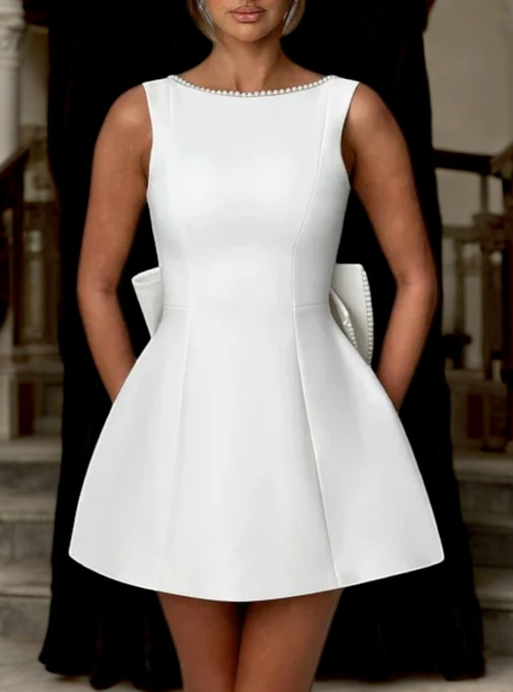 Deze prachtige mini jurk is de perfecte keuze voor zelfverzekerde dames die moeiteloze elegantie willen uitstralen. Met een chique rugloos ontwerp en een speels vlinderknoopdetail, biedt deze slanke a-lijn jurk een flatterende pasvorm die je rondingen accentueert. De lichtgewicht en ademende stof zorgt ervoor dat je koel blijft tijdens zomerse uitstapjes, date nights of speciale evenementen. Combineer het met hakken met riempjes voor een verfijnde look of met pumps voor een casual avondje uit.