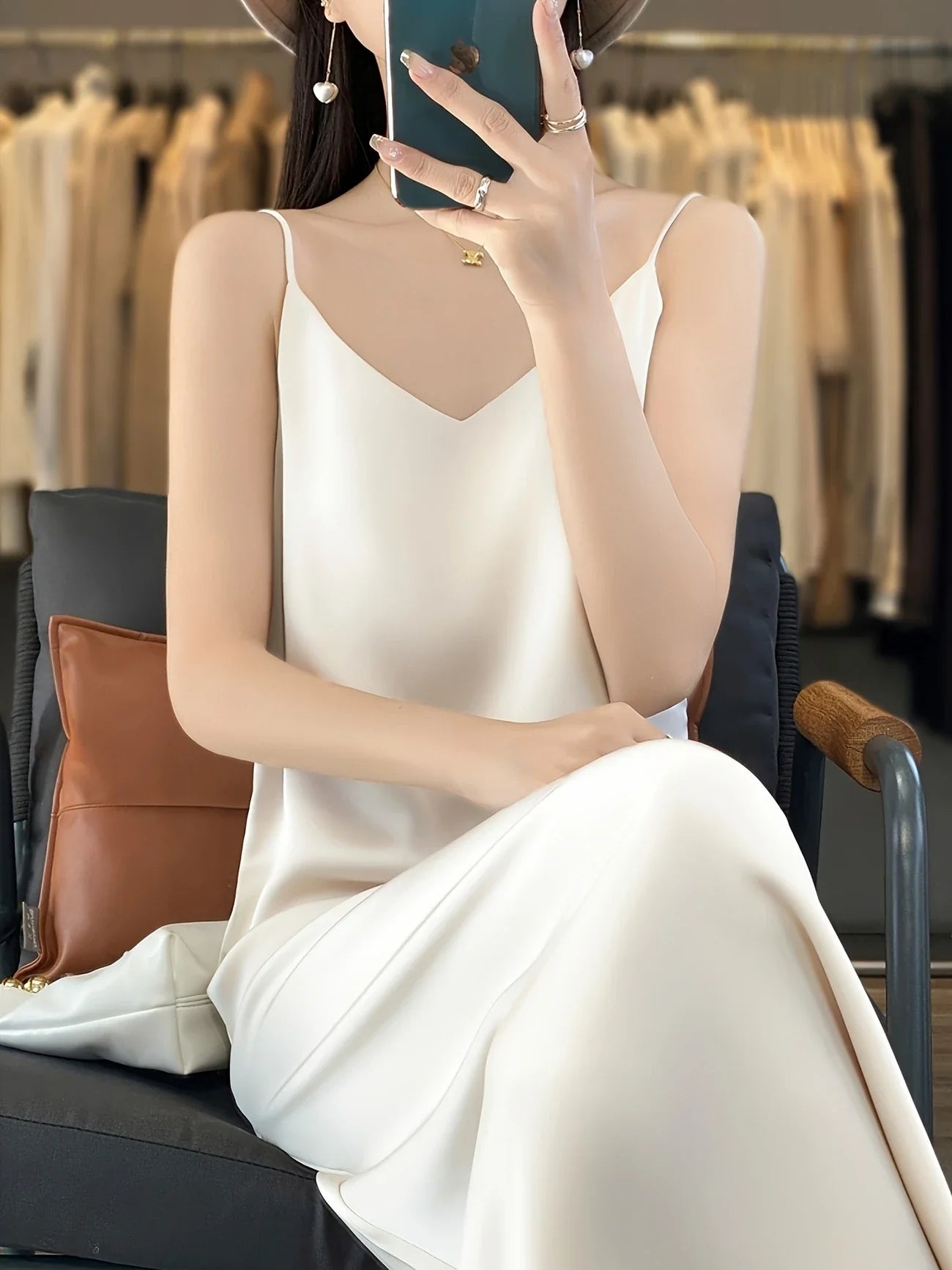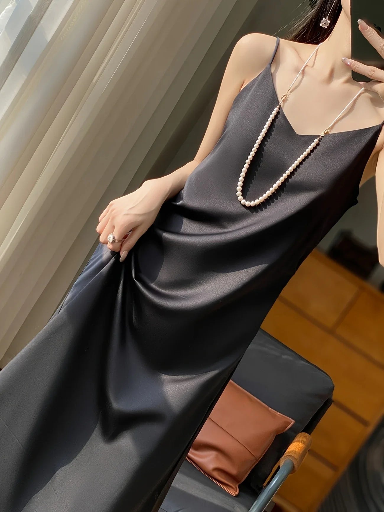 Deze prachtige midi jurk voor dames is de perfecte combinatie van luxe en comfort. Gemaakt van een zijdezachte satijnen stof, valt de jurk soepel en elegant om je lichaam. De V-hals en mouwloze snit geven een verfijnde uitstraling, waardoor deze jurk ideaal is voor feestjes, diners en andere speciale gelegenheden. Of je nu kiest voor hakken voor een chique look of sandalen voor een casual elegantie, deze jurk past bij elke gelegenheid.