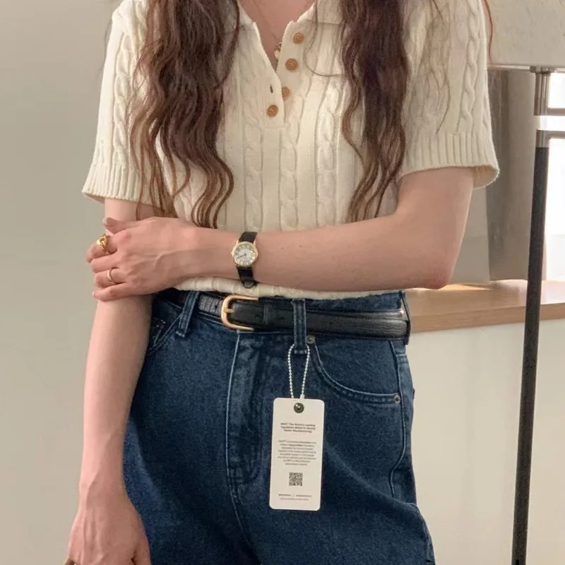Tijdloze elegantie: De Athena Polo heeft een opvallende kraag en elegante knoopsluiting voor een chique, verfijnde look.