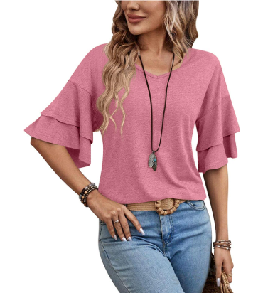 Dames T-shirt met Flare Mouwen en V-hals