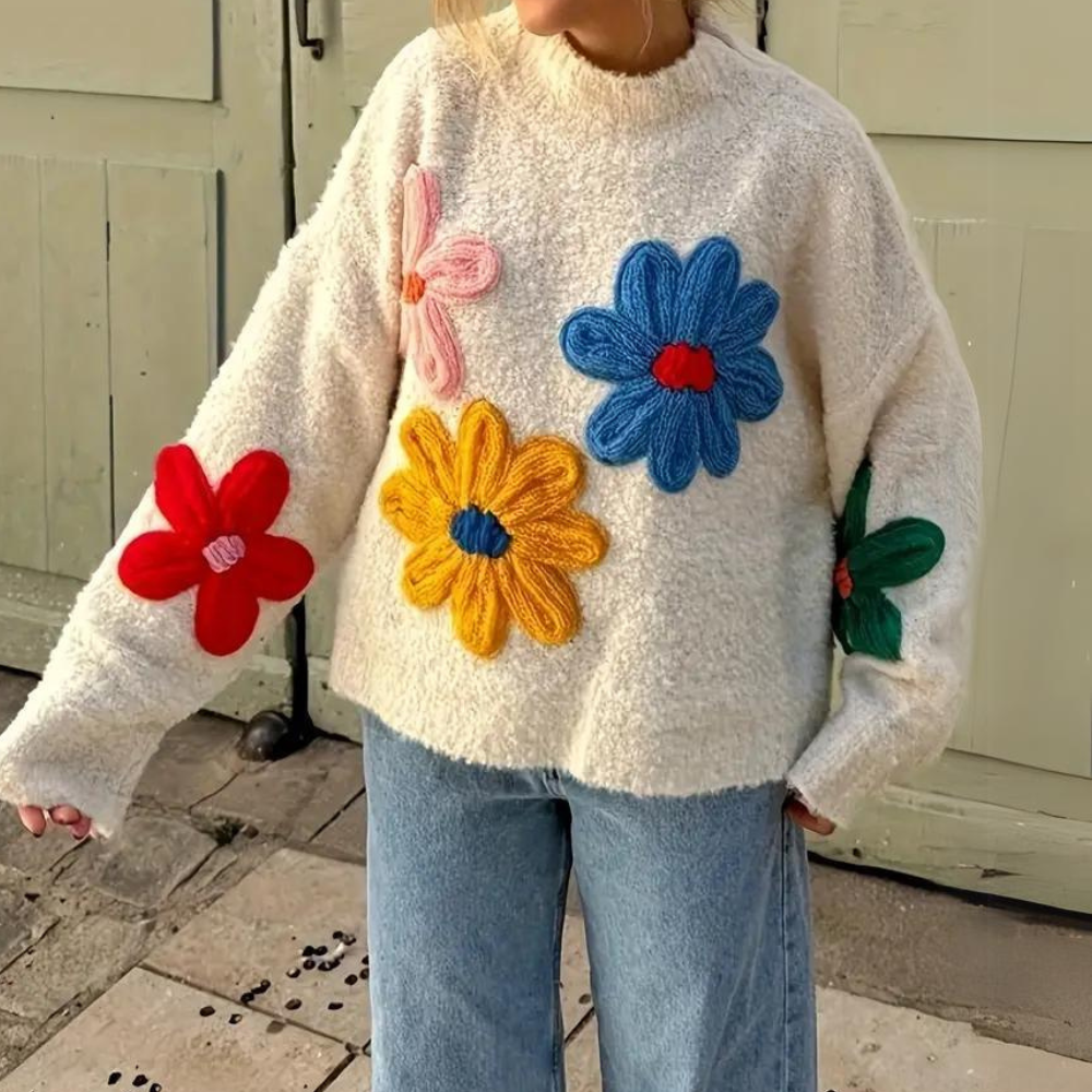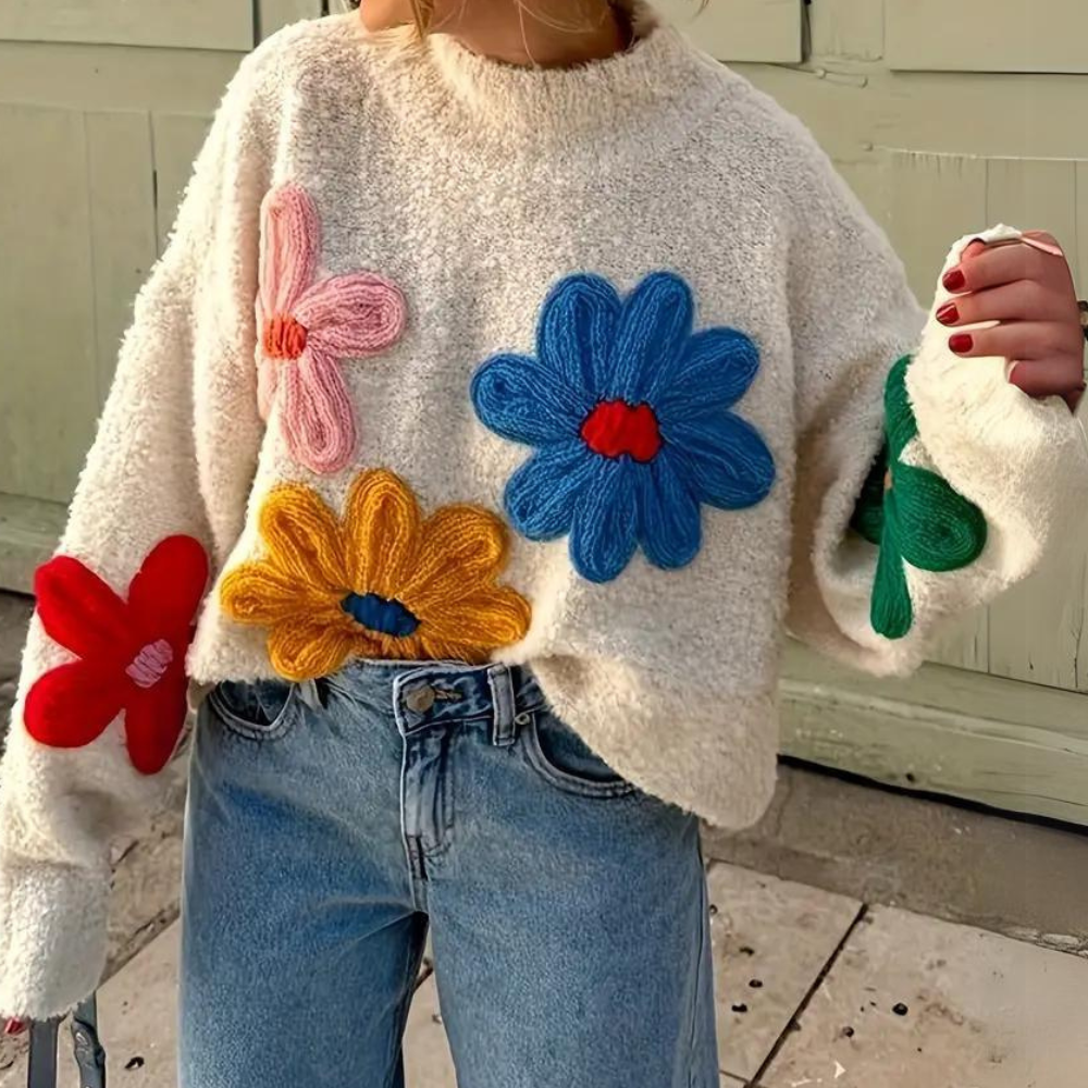 Voeg een vleugje bloemencharme toe aan je garderobe met de Brenda Sweater!