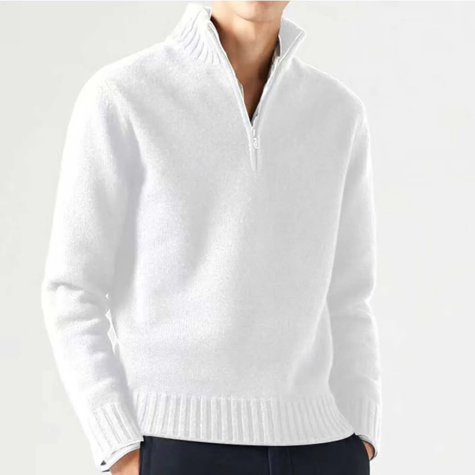 Ontdek de Aaron - Winterklare herentrui met halve rits - de perfecte combinatie van comfort en stijl voor koude winterdagen. Deze hoogwaardige sweater houdt je warm met zijn dik gevoerde binnenkant en biedt een slanke pasvorm die ideaal is voor elke gelegenheid, van casual tot formeel. Blijf beschermd tegen de kou terwijl je er op je best uitziet.