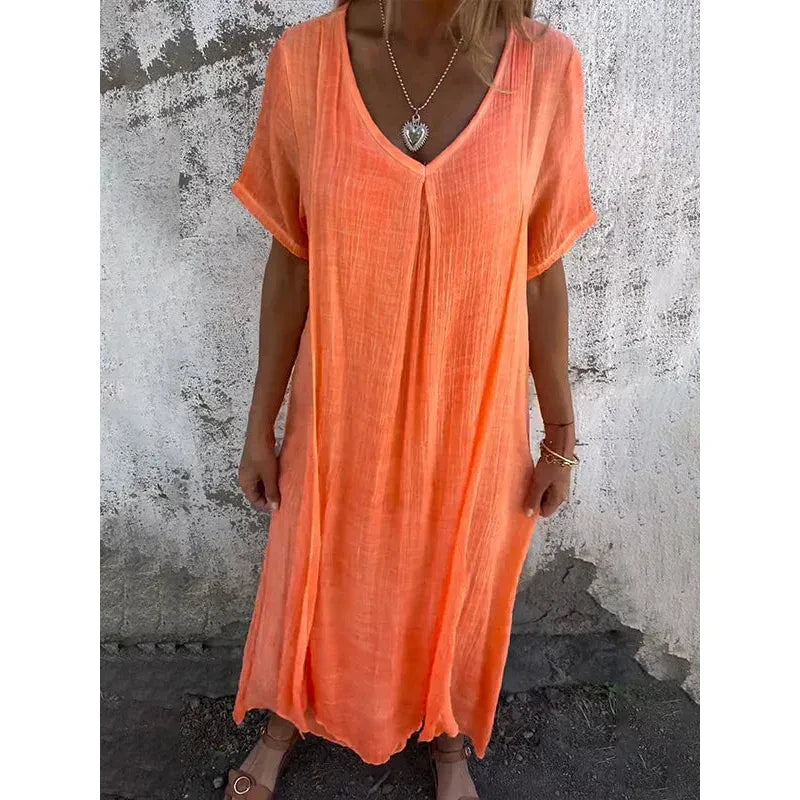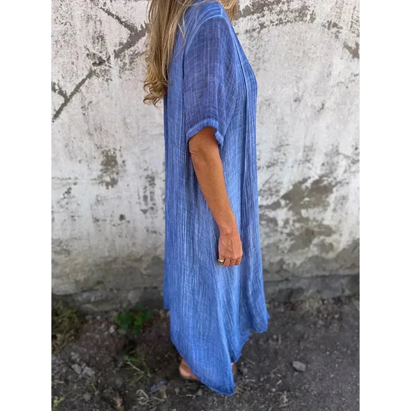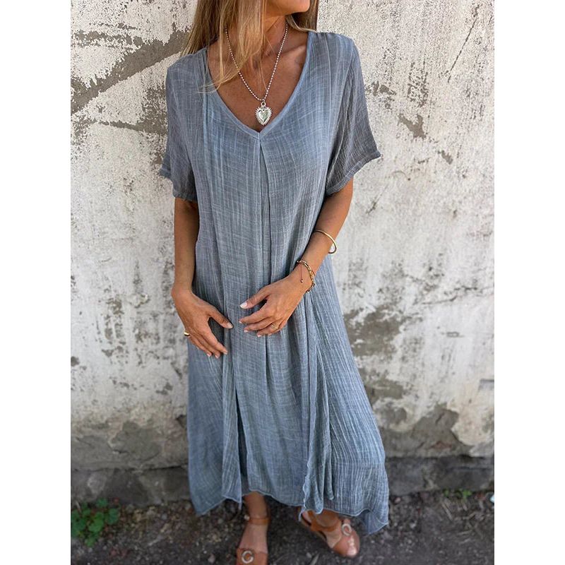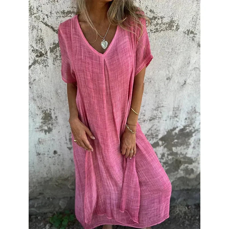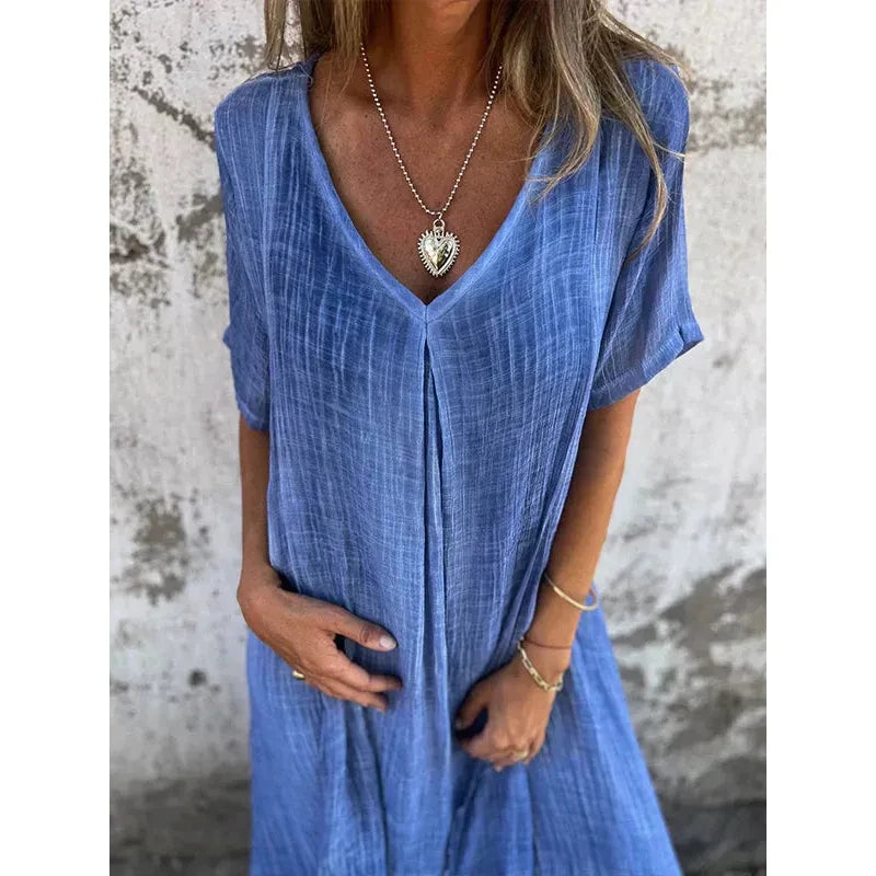 Deze betoverende jurk combineert luchtig comfort met een stijlvolle uitstraling, perfect voor warme dagen en avondjes uit.