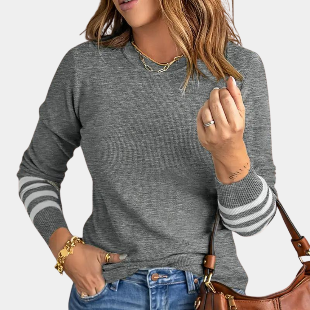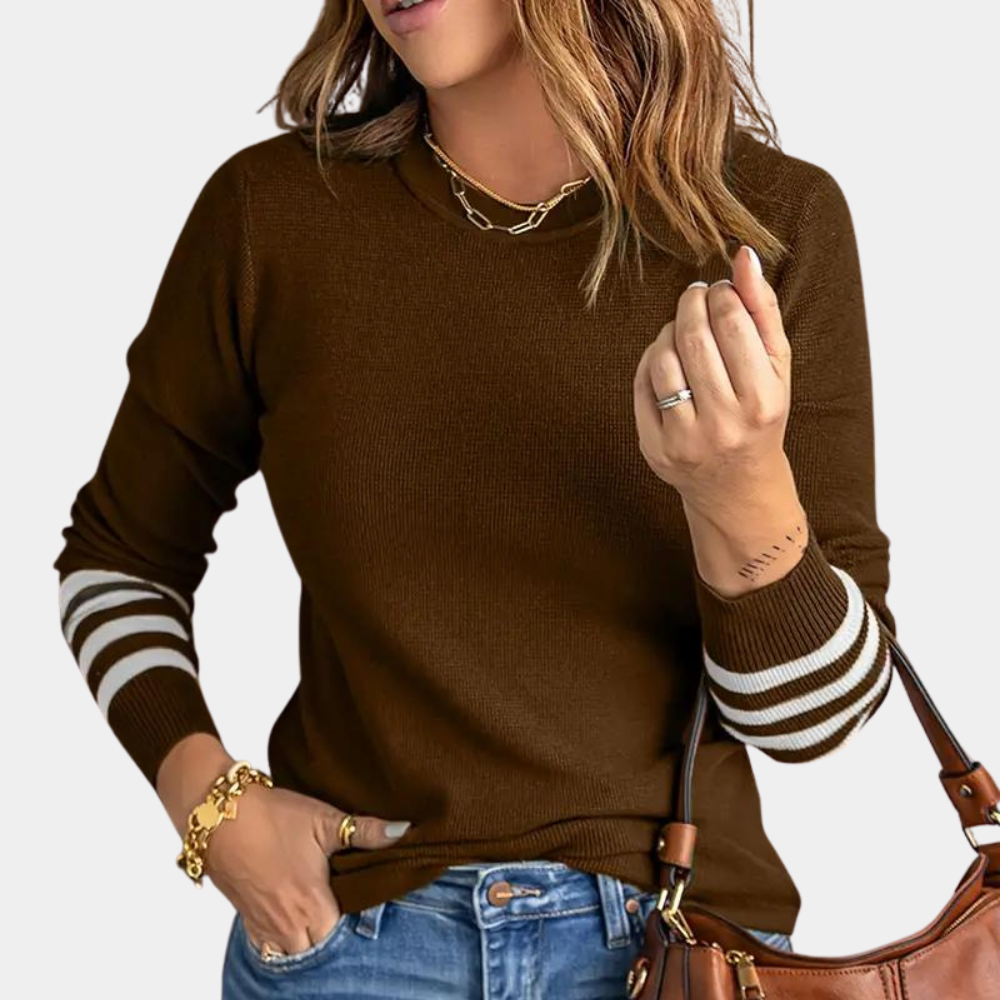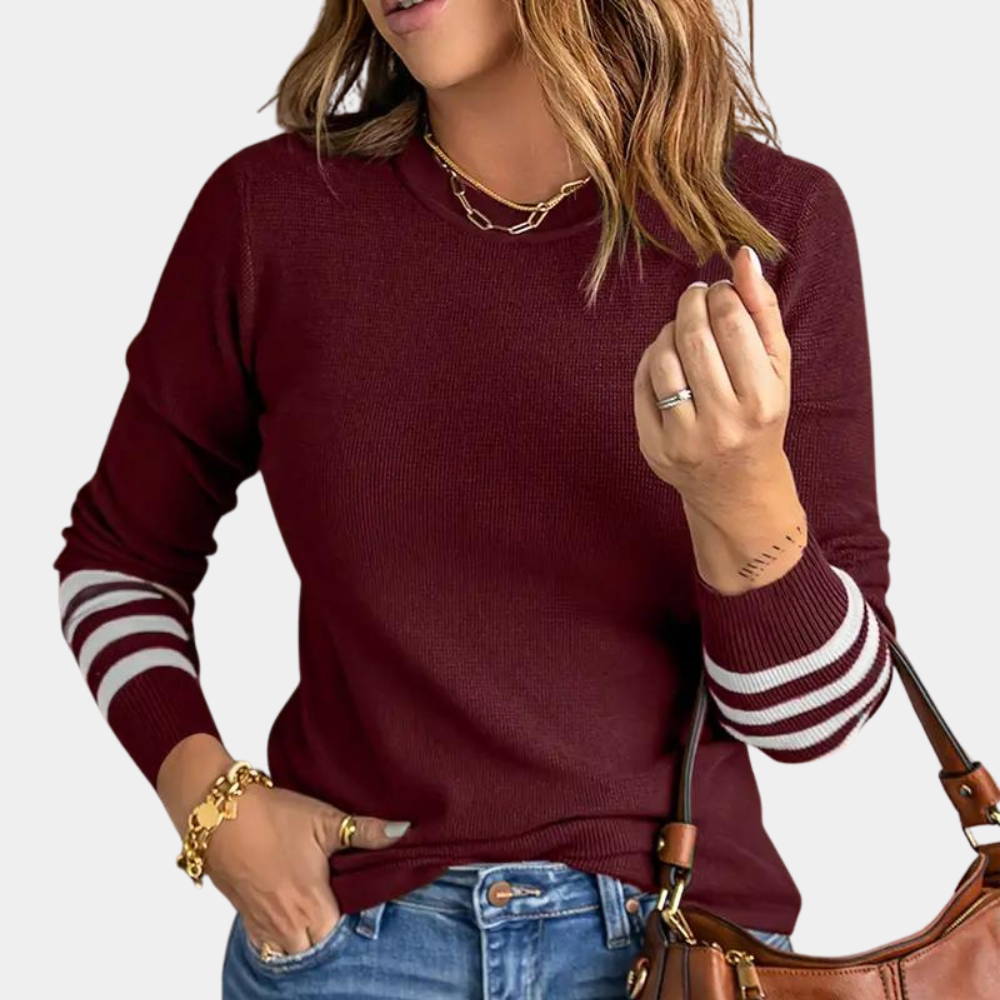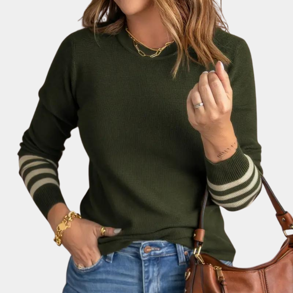 Daarom kiezen onze klanten voor de Ema - Geraffineerde damestrui met chique gestreepte mouwboorden!